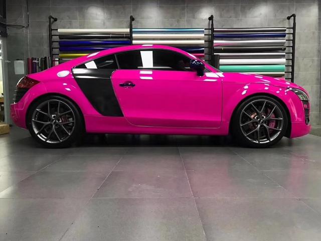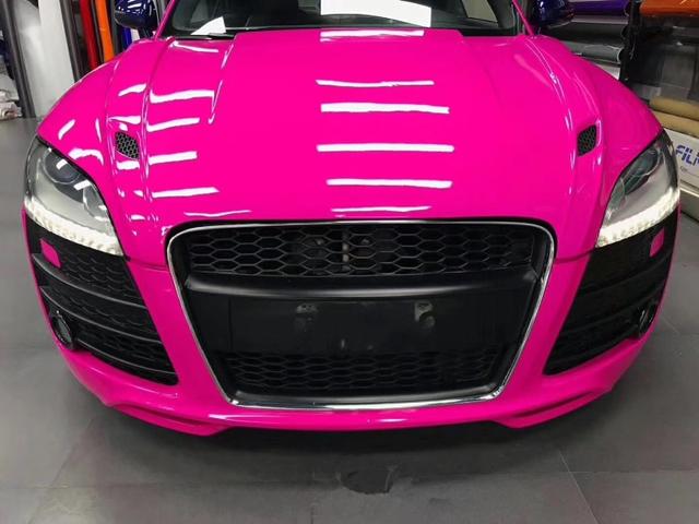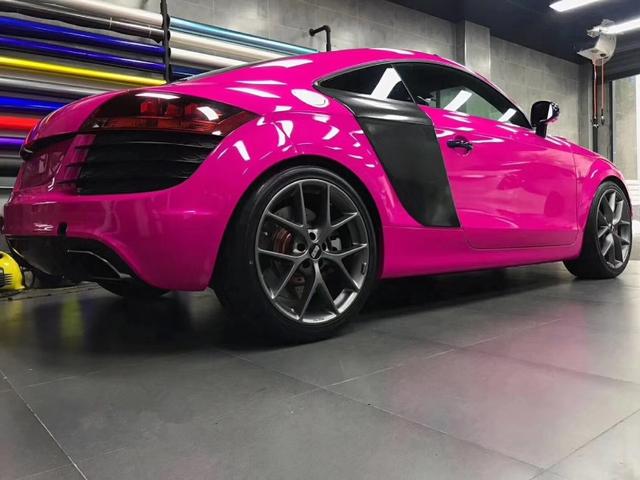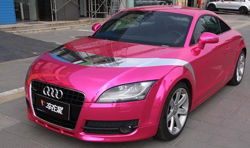 奥迪TT改色贴膜高光玫红 骚到没朋友