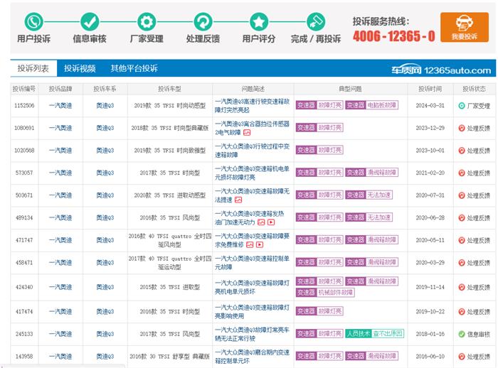 一汽奥迪Q3变速箱渗油要求厂家处理