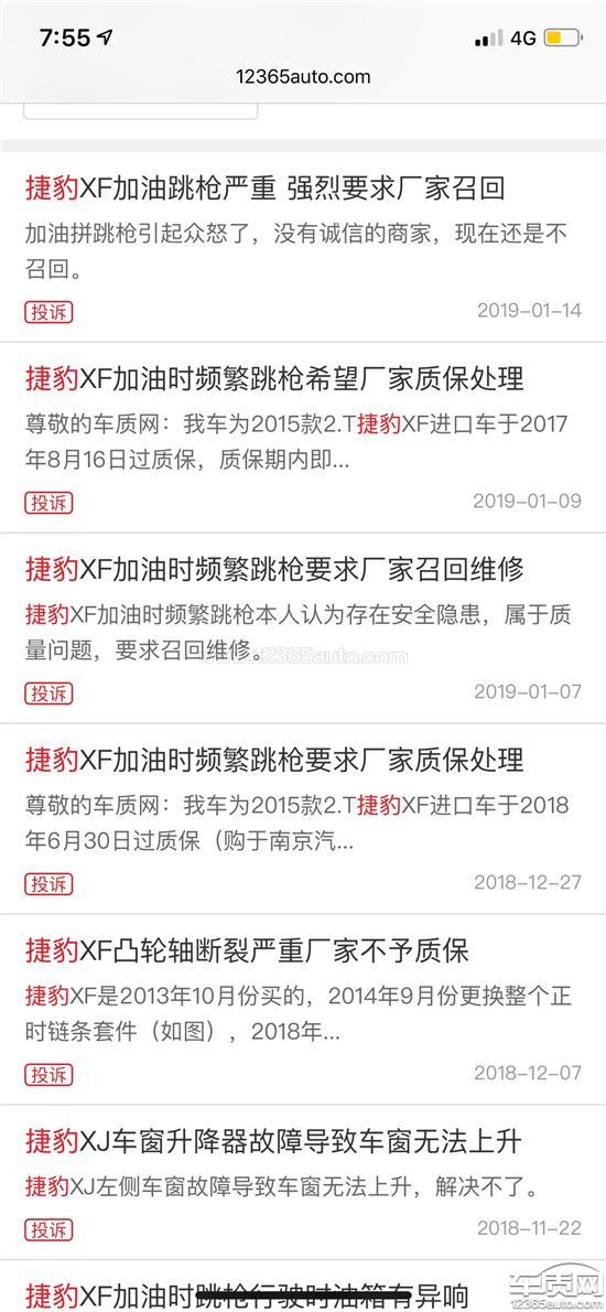 捷豹XF加油时频繁跳枪要求厂家召回维修